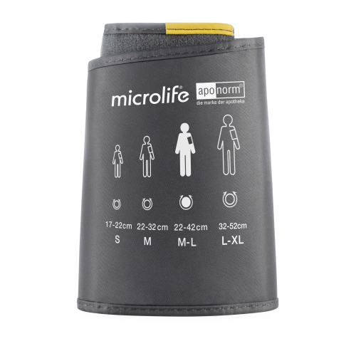 Die aponorm® Softbügelmanschette Gr. M-L deckt als Universalmanschette eine besonders breite Oberarmspanne von 22 - 42 cm ab und ist damit ideal, wenn in Ihrem Haushalt mehrere Personen mit dem gleichen aponorm® Blutdruckmessgerät messen wollen. Sie ist für alle aponorm® Oberarmmodelle passend (Anschluss an ältere Gerätegenerationen über beiliegenden Adapter-Anschlussstecker möglich). Manschettenhöhe: 15,5 cm