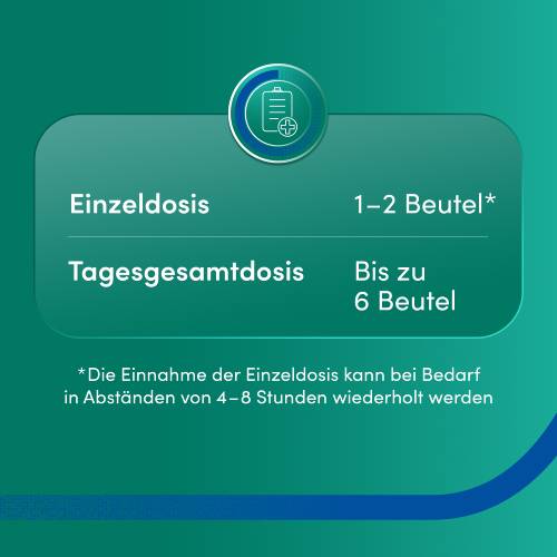 Wenn vom Arzt nicht anders vorgeschrieben, liegt die empfohlene Einzeldosis für Erwachsene und Jugendliche ab 16 Jahren bei ein bis zwei Beuteln. Gerade bei starken Beschwerden am Anfang einer Erkältung sind zwei Sticks auf einmal sinnvoll. Beim Abklingen der Symptome sollten Sie die Dosis wieder reduzieren. Je nach Bedarf können Sie die Einnahme nach vier bis acht Stunden wiederholen. Beachten Sie jedoch, dass Sie pro Tag maximal sechs Granulat-Sticks zu sich nehmen.