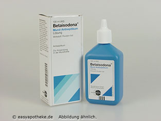 Die Betaisodona Mund Antiseptikum Lösung wird zur einmaligen antiseptischen Behandlung der Mundschleimhaut vor operativen Eingriffen, insbesondere bei Patienten mit Störungen der körpereigenen Abwehr sowie Endokarditis-gefährdeten Patienten angewendet. Die Lösung enthält den Wirkstoff Povidon Jod. Sobald der Wirkstoff mit der Schleimhaut in Berührung kommt, kommt es zu einer Freisetzung von Jod. Durch das entstandene Jod kommt es zu einer Hemmung des Keimwachstums auf der Haut und zu einer Abtötung von Krankheitserregern. Die Betaisodona Mund Antiseptikum Lösung desinfiziert das betroffene Gebiet schnell und zuverlässig.