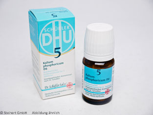 Die Biochemie DHU 5 Kalium Phosphoricum D 6 Tabletten. Die Tabletten enthalten den homöopathischen Wirkstoff Kaliumphosphat.