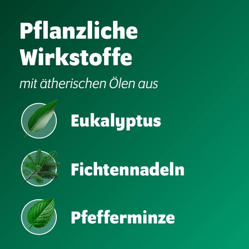 Die Inhaltsstoffe entstammen mehreren Pflanzen und wirken als natürliches Gemisch. Die Inhaltsstoffe bewirken im Anwendungsgebiet eine vermehrte Durchblutung und eine Schleimlösung. Eucalyptusöl regt zudem die feinen Härchen der oberen Atemwege zu schnelleren Bewegungen an. Dadurch kann festsitzender Schleim besser abtransportiert und das Abhusten erleichtert werden. Es vermindert außerdem den Hustenkrampf.