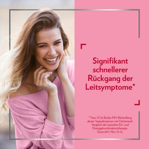 Anwendungsgebiete Kombipackungen: Bei infektiösem Ausfluss, verursacht durch Hefepilze; Entzündungen der Scheide und Schamlippen durch Pilze - meist Hefepilze der Gattung Candida - sowie überlagernde Infektionen (Superinfektionen) mit Clotrimazol-empfindlichen Bakterien.