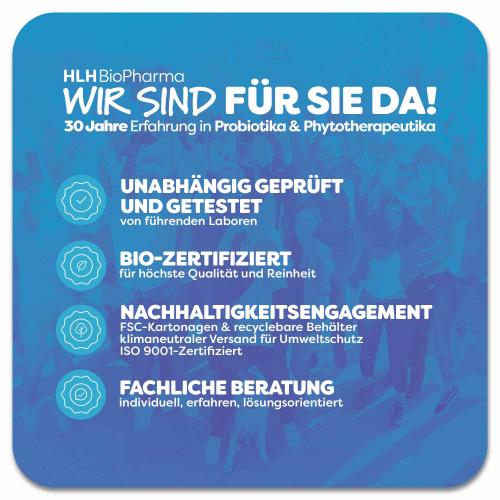 Da es sich um ein natürlich fermentiertes Präparat handelt, ist es rein pflanzlich und ohne unerwünschte Zusatz- oder Füllstoffe hergestellt. Präparate von HLH BioPharma aus Deutschland werden unter wissenschaftlicher Kontrolle entwickelt, von unabhängigen Laboren in Deutschland überprüft und stammen aus zertifizierter Produktion mit höchsten Standards.