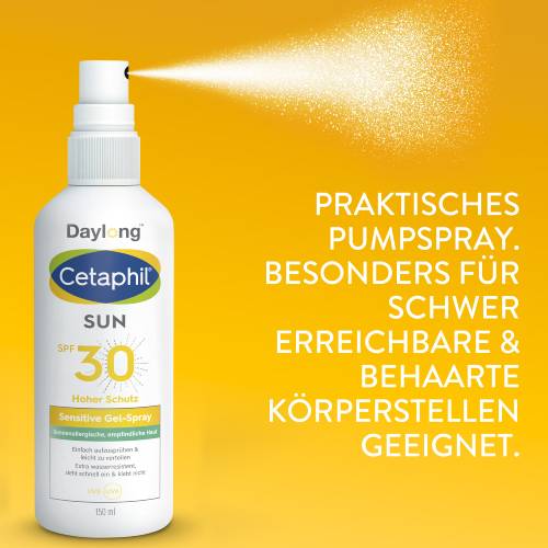 Das Cetaphil Sun Daylong SPF 30 Sensitive Gel-Spray ist speziell für fettige und empfindliche Haut oder zu Sonnenallergie/ Mallorca-Akne neigende Haut geeignet. Denn es extra leicht und fettfrei formuliert, verzichtet auf Parfüm, Emulgatoren und Konservierungsstoffe. Durch die einfache Applikation mittels Sprühen lässt sich das Spray insbesondere für schwer erreichbare oder behaarte Körperstellen anwenden. Wenn Sie gerne auf hochwirksamen, zuverlässigen und leicht anzuwendenden Sonnenschutz vertrauen, ist das Cetaphil Sun Daylong SPF 30 Sensitive Gel-Spray die richtige Wahl.