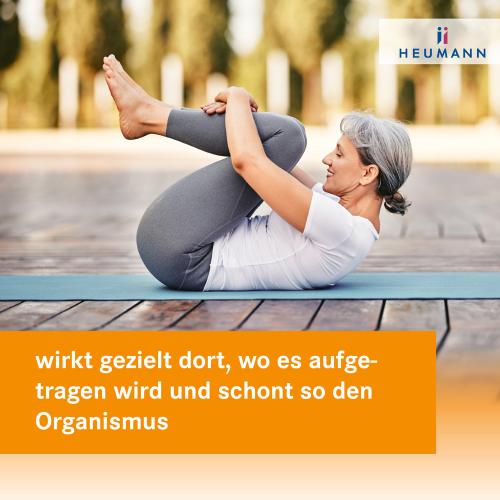 Pflichtangaben: Diclofenac HEUMANN Gel, Gel mit 10 mg Diclofenac-Natrium/g (Wirkstoff: Diclofenac-Natrium). Zur Anwendung bei Erwachsenen und Jugendlichen ab 14 Jahren. Anw.: Bei Erwachsenen zur äußerlichen Behandlung von Schmerzen, Entzündungen und Schwellungen bei: Sport- und Unfallverletzungen (Verstauchungen, Prellungen, Zerrungen); rheumatischen Erkrankungen der Weichteile (Sehnen- und Sehnenscheidenentzündungen, Schleimbeutelentzündungen, Entzündungen im Muskel- und Kapselbereich); degenerativen Erkrankungen der oberen und unteren Gliedmaßen (periphere Extremitätengelenke). Bei Jugendlichen über 14 Jahre zur Kurzzeitbehandlung, zur lokalen, symptomatischen Behandlung von Schmerzen bei akuten Prellungen, Zerrungen oder Verstauchungen infolge eines stumpfen Traumas. Stand: 11/2023.