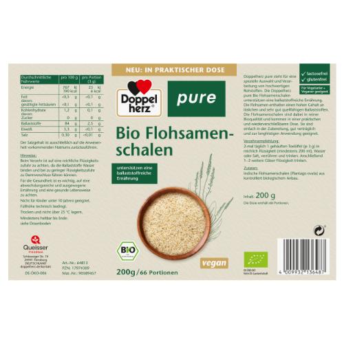 Die von Doppelherz verwendeten Flohsamenschalen „Plantago ovata“ in reiner Bio-Qualität werden in Indien angebaut. Sie weisen eine besondere Qualität auf, denn die Quellfähigkeit der Plantago ovata ist höher als bei anderen Sorten und sie sind reich an hochwertigen Ballaststoffen. Flohsamenschalen sind ein Naturprodukt und werden von Hand geerntet und schonend getrocknet. Ein spezielles Verfahren ermöglicht die Trennung von Samen und Schalen und gewährt so ein Produkt mit einem besonders hohen Quellvolumen. Natürlich achten wir bei unseren Produkten auf mögliche Verunreinigungen: Von der Ernte bis zum fertigen Produkt finden regelmäßige Laboruntersuchungen und Analysen statt, um die gewohnt hohe Doppelherz Qualität zu bieten. Die gesamte Lieferkette von Herstellung über Verpackung und Vermarktung erfolgt gemäß den EU-Rechtsvorschriften zum ökologischen Landbau und wurde entsprechend durch eine zugelassene Öko-Kontrollstelle zertifiziert. Das Produkt ist gekennzeichnet mit dem EU-Bio-Logo und dem deutschen Bio-Siegel und so ideal für Kunden die Bio-Qualität wertschätzen.