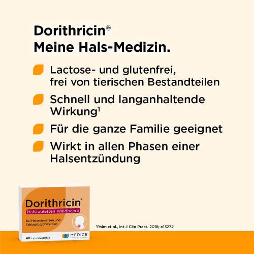 Der Vorteil: Dorithricin® bekämpft Halsschmerzen und Schluckbeschwerden schnell und langanhaltend, ohne dass dabei ein unangenehmes Taubheitsgefühl im Mund entsteht.