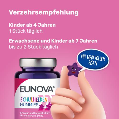 EUNOVA® Schulhelden Gummies eignen sich für Erwachsene und Kinder ab 4 Jahren.