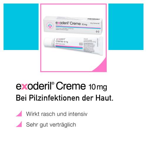 Exoderil besitzt mit Naftifin einen einzigartigen Wirksoff, der fungizid (pilzabtötend) gegenüber Dermatophyten und Schimmelpilzen wirkt und dennoch ausgezeichnet verträglich ist