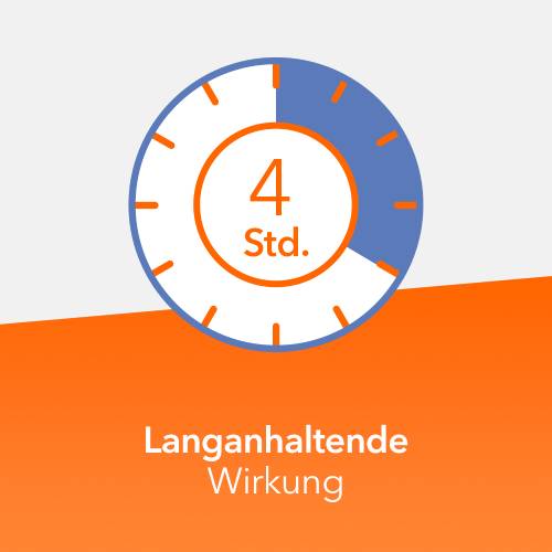 - Eine erste Wirkung tritt bereits nach 15 Minuten ein und hält bis zu 4 Stunden an