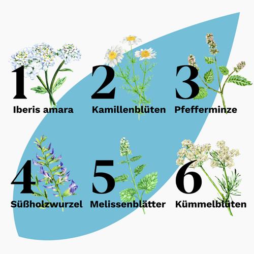 · einzigartige Kombination aus 6 Heilpflanzen mit hohem Anteil an beruhigenden, entzündungshemmenden und schleimhautschützenden Extrakten
