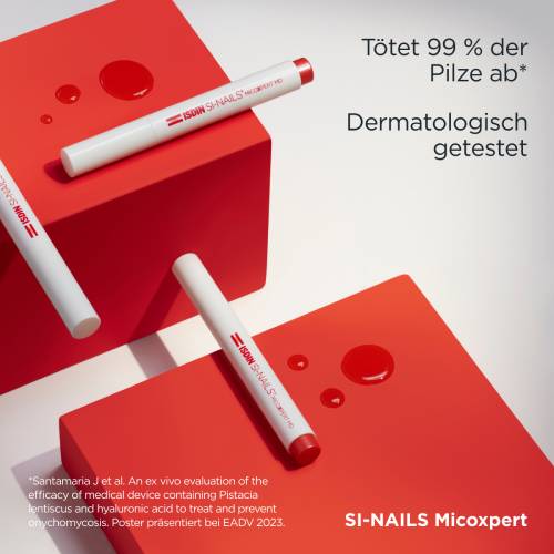 SI-NAILS® MicoXpert ist ein Medizinprodukt zur Behandlung und Prävention von milden bis moderaten Pilzinfektionen der Hand- und Fußnägel. Es ist bei den häufigsten nagelbefallenden Pilzarten wirksam: Dermatophyten (Tinea unguium; Nagelpilz), Hefen (Candidose der Nägel), Fadenpilzen und Schimmelpilzen. Außerdem trägt das Produkt dazu bei, das Erscheinungsbild der Nägel und Nagelhaut zu verbessern und die gelbe Verfärbung, die bei Pilzinfektionen auftreten kann, zu reduzieren.