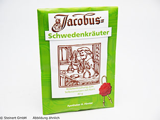 Jacobus-Schwedenkräuter enthalten wohl aufeinander abgestimmte Heilkräuter, die im Zusammenwirken von Geschmack und Abführwirkung die Schwedenkräuter so berühmt gemacht haben. Jacobus-Schwedenkräuter wirken erfolgreich gegen Darmträgheit und Verstopfung.