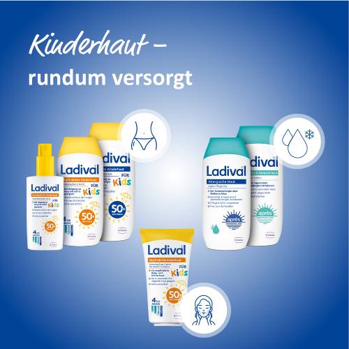 Ganzjähriger Sonnenschutz ist essenziell, da er nicht nur vor Sonnenbrand schützt, sondern auch das Risiko an Hautkrebs zu erkranken reduziert. Kinderhaut ist besonders empfindlich gegenüber schädlichen UV-Strahlen und benötigt daher besonderen Schutz – vor allem, da Kinder viel Zeit im Freien verbringen. Ladival® bietet hierfür das Allergische Kinderhaut Sonnenschutz-Gel mit einem hohen Lichtschutzfaktor von 50+, speziell formuliert für die empfindliche Haut von Babys und Kindern ab 6 Monaten.