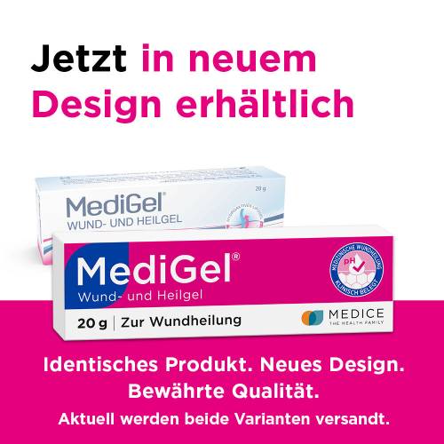 Effektiv und für akute Wunden geeignet: Das ist MediGel® Wund- und Heilgel. Das hydroaktive Lipogel, das eigens von Hautärzten entwickelt wurde, trägt mit Zink- und Eisenionen zu einem pH-Wert-optimierten Wundklima bei und fördert so den natürlichen Heilungsprozess bei Wunden. Gleichzeitig wird sowohl das Infektionsrisiko als auch die Narbenbildung verringert. Dabei optimiert MediGel® die Prinzipien der feuchten Wundheilung – ohne Kruste, ohne Spannungsschmerz.
