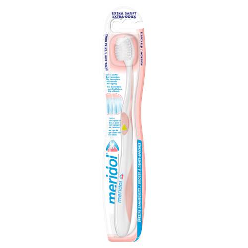 Die meridol Spezial Zahnbürste EXTRA SANFT ist mit extra sanften, mikrofeinen Borstenenden ausgestattet für eine besonders schonende Plaque-Entfernung bei irritiertem, empfindlichem Zahnfleisch oder nach operativen Eingriffen.