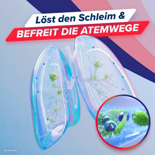 Der Wirkstoff löst festsitzenden Schleim in den Atemwegen. Der zähe Schleim wird dünnflüssiger und die Haftung an den Schleimhäuten der Bronchien nimmt ab. Dadurch geht die Verschleimung zurück und das Abhusten wird erleichtert.