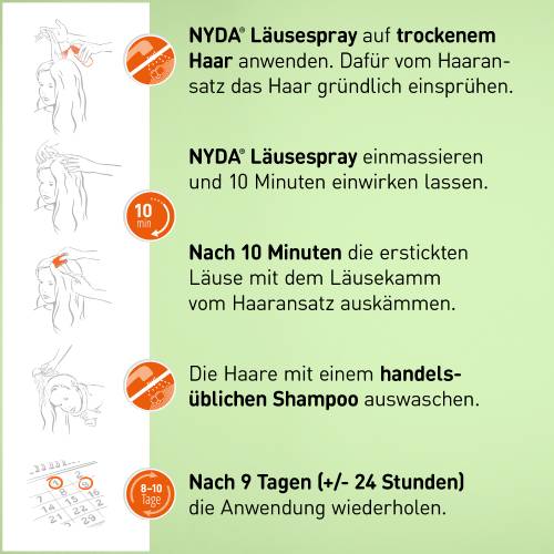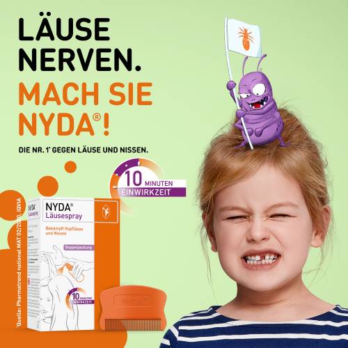 Mit NYDA® Läusespray gibt es ein neues und zugleich erstattungsfähiges NYDA®-Produkt auf den Markt, das mit einer kurzen Einwirkzeit von nur 10 Minuten punktet und dem ein Läusekamm beiliegt. NYDA® Läusespray beseitigt die unerwünschten Krabbler zuverlässig, wie unlängst eine klinische Studie bestätigte.1 Durch die physikalische Wirkweise ist NYDA® Läusespray sehr gut verträglich und auch für die Anwendung bei Säuglingen, Schwangeren und Stillenden zugelassen.