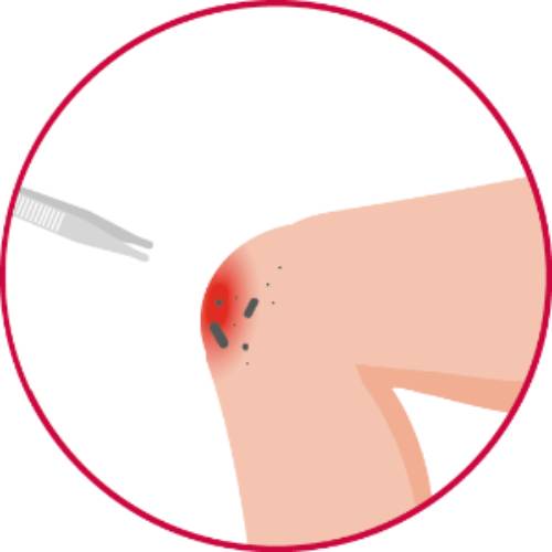 Vor jeder Versorgung einer Wunde sollten Sie gründlich die Hände mit Seife waschen und sie anschließend desinfizieren, um eine mögliche Infektion der offenen Wunde durch Bakterien auf den Händen zu vermeiden. Dafür eignet sich zum Beispiel desmanol® care. Reinigen Sie anschließend die betroffene Hautstelle mit Wasser und entfernen Sie Fremdkörper, wie Splitter und oder kleine Steinchen aus der Wunde – dafür ist am besten eine saubere Pinzette geeignet. Im Anschluss kommt octenisept® Wund-Desinfektion als Spray zum Einsatz. Mithilfe des Wundsprays wird die Verletzung und deren nähere Umgebung ganzheitlich benetzt. Das Antiseptikum für mind. 60 Sekunden einwirken lassen, um so ein optimales Ergebnis zu erzielen.