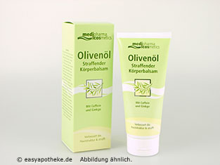 Der Olivenöl straffender Körperbalsam wird zur Pflege und Straffung von reiferer Haut angewendet. Der Balsam enthält unter anderem eine Kombination aus kaltgepressten Olivenöl, Coffein und Ginkgo, sowie hautverwandten Ceramiden. Coffein kann das Enzym aktivieren, welches in der Lage ist das Fett zu spalten und dessen Abbau zu fördern. Ginkgo kann das Hautbild glätten und erfrischen und gleichzeitig den Zellstoffwechsel aktivieren. Die Ceramide regulieren den Feuchtigkeitshaushalt der Haut. Der Olivenöl straffender Körperbalsam verbessert die Hautstruktur und strafft und glättet die Haut.