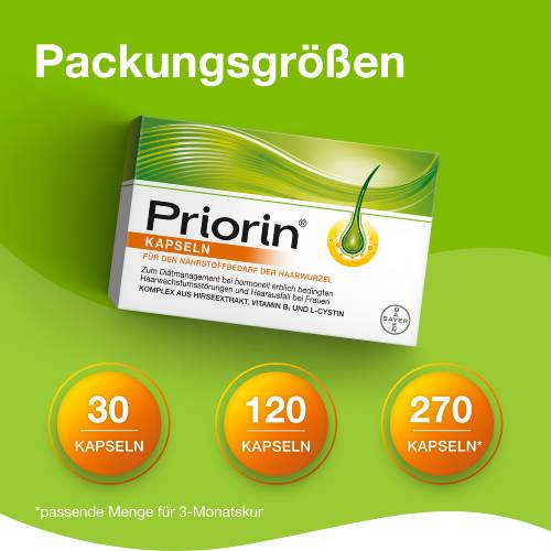 Sind auch Sie davon betroffen, empfehlen wir Priorin® Kapseln: Entwickelt zum Diätmanagement von hormonell erblich bedingten Haarwachstumsstörungen und Haarausfall bei Frauen enthalten die Priorin® Kapseln einen besonderen Komplex aus den speziellen Mikronährstoffen