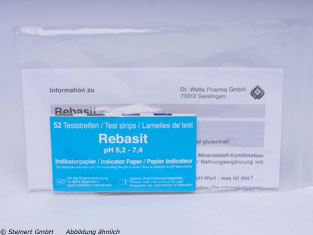 Das Rebasit Indikatorpapier wird zur einfachen Kontrolle des pH-Wertes des Urins angewendet. Der Indikatorstreifen muss einfach eine Sekunde in den Urinstrahl oder Becher gehalten werden und kann nach zwei Minuten kinderleicht abgelesen werden. Durch diese einfache Messung kann der Wert zuverlässig und bei Bedarf mehrmals täglich überprüft werden. Das Rebasit Indikatorpapier zeigt zuverlässige Ergebnisse an und misst den Wert im Bereich von 5,2 bis 7,4.
