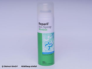Das Reparil Ice Spray wird zur schnellen, sofortigen Behandlung von Sportverletzungen angewendet. Das Spray enthält eine Kombination aus Butan, Propan und Pentan mit den Wirkstoffen Campher und Menthol. Das Produkt darf nur auf geschlossene Verletzungen gesprüht werden. Durch den sofortigen Kühleffekt kommt es zu einer schnellen Linderung der akuten Schmerzen. Bei einer rechtzeitigen Anwendung kann einer Schwellung effektiv vorgebeugt werden. Beim Reparil Ice Spray handelt es sich um ein verflüssigtes Gas zum Aufsprühen auf die Haut.