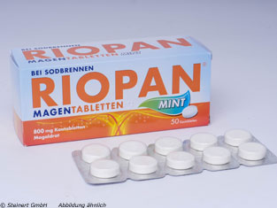 Die bewährten RIOPAN Magen Tabletten zur Anwendung bei Sodbrennen und säurebedingten Magenbeschwerden gibt es auch mit Mint-Geschmack für ein frischeres Atemgefühl. Zudem wird durch das in RIOPAN Magen Tabletten Mint enthaltene Aroma der Speichelfluss angeregt, so dass sich die Tablette besonders angenehm kauen und schlucken lässt. Pro Kautablette sind ebenfalls 800 mg Magaldrat enthalten. Bei Bedarf können mehrmals täglich 1-2 Kautabletten von Erwachsenen und Kindern ab 12 Jahren  eingenommen werden, wobei eine Tagesdosis von acht Kautabletten nicht überschritten werden sollte.