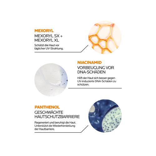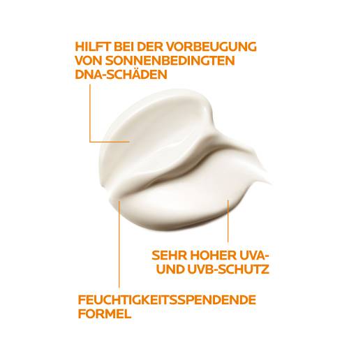 Die hochwirksame Sonnencreme ANTHELIOS KA+ MED Creme zur Prävention aktinischer Keratose (AK) und nicht-melanozytärem Hautkrebs (NMSC) schützt die Haut dank MEXORYL SX und MEXORYL XL vor UVA- und UVB-Strahlen. So hilft die Sonnenpflege bei der Vorbeugung von sonnenbedingten DNA-Schäden. Die hochwirksame Sonnencreme ANTHELIOS KA+ MED enthält keine Duftstoffe. Die feuchtigkeitsspendende Formel mit Niacinamid und Panthenol schützt die Hautbarriere. Anthelios KA+ MED dient der Vorbeugung aktinischer Keratosen (AK) und nicht-melanozytärem Hautkrebs (NMSC).