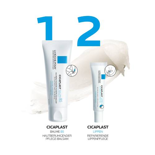 Die reparierende und schützende Intensiv-Pflege CICAPLAST LIPPEN von La Roche-Posay mildert das unangenehme Empfinden spröder Lippen und rissiger Mundwinkel. Mit seiner Barriere-Textur pflegt und schützt die Pflege beanspruchte Lippen und legt sich über die Haut. Lippen-Pflege mit 10 % Karitébutter macht das rissige Gewebe wieder geschmeidig, pflegt Mundwinkel intensiv und sorgt langanhaltende Geschmeidigkeit. Die Formel mit 5% Panthenol repariert und beruhigt gereizte Lippen. Eine besondere Innovation bieten die PM-Lipide. Sie verhindern den sogenannten Rückfall-Effekt, bei dem sich durch ständiges Auftragen die Trockenheit an den Lippen eher erhöht. Diese Lipide helfen dabei, die natürliche Hautschutzbarriere aufzubauen und so diesem Effekt ab der ersten Anwendung entgegenzuwirken. Alle Inhaltsstoffe in Kombination sorgen für ein langanhaltendes Wohlbefinden und eine intensive Pflege spröder Lippen.