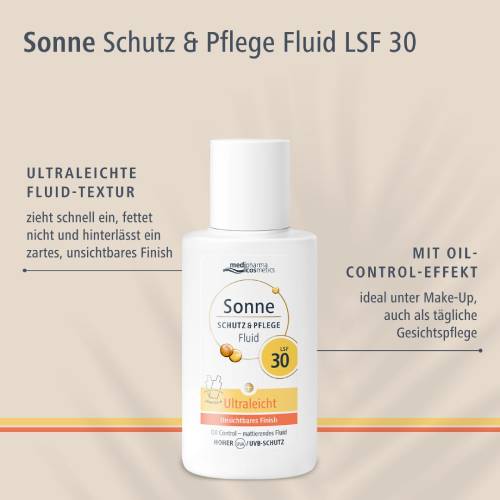 Sonne Schutz&Pflege Fluid mit LSF 30 von medipharma cosmetics: Kombiniert zuverlässigen Sonnenschutz und intensive  Feuchtigkeit mit mattem Finish