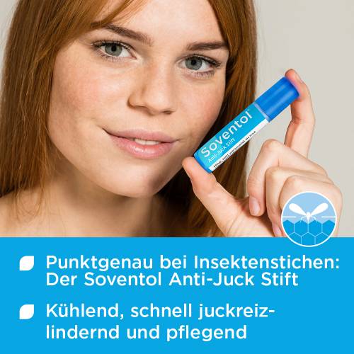 Bei Mückenstichen hat sich der Soventol® Anti-Juck Stift hervorragend bewährt: Er kühlt wunderbar und pflegt sanft.