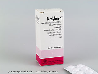 Tardyferon Retardtabletten enthalten zweiwertiges Eisen in Form von Eisen(II)-sulfat. Bei länger bestehendem Eisenmangel empfiehlt sich die Einnahme von Tardyferon Retardtabletten. Die Freisetzung erfolgt im Darm, da wo Eisen am besten aufgenommen wird und zudem wird die Magenschleimhaut geschont. Eisen wird fast überall im Körper für die Funktion von Botenstoffen benötigt. Es ist außerdem ein wichtiger Bestandteil des roten Blutfarbstoffs Hämoglobin, der im Körper die Aufgabe hat, Luftsauerstoff aus der Lunge aufzunehmen und im Körper zu verteilen. Symptome bei einem Eisenmangel könnten Schwäche und Appetitlosigkeit, Blässe, offene Mundwinkel und Müdigkeit sein.