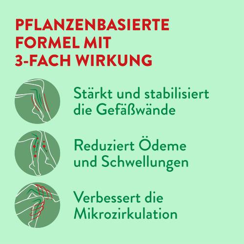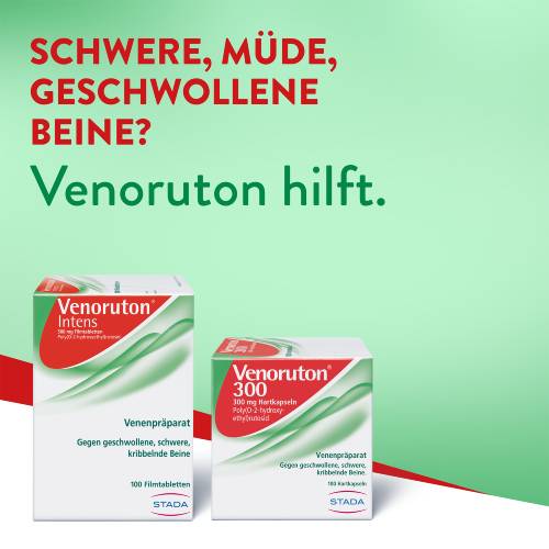 Die Venoruton intens Filmtabletten werden zur natürlichen Behandlung und Vorbeugung von Krampfadern, Thrombosen und oberflächlichen Venenentzündungen angewendet. Die Filmtabletten enthalten den Wirkstoff Oxerutine. Dieser Wirkstoff verfügt über gefäßabdichtende Eigenschaften, wodurch Feuchtigkeitsansammlungen im Gewebe verhindert und die Venen stabilisiert werden können. Die typischen Beschwerden, wie zum Beispiel Schwellungen, Juckreiz und Schmerzen können gelindert werden. Die Venoruton intens Filmtabletten eignen sich auch zur unterstützenden Behandlung von Diabetikern mit einer Gefäßschwäche der Augen.