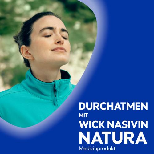 - INHALT: 1x WICK Nasivin Natura, abschwellendes Nasenspray mit Inhaltsstoffen, die zu 97 % natürlichen Ursprungs sind, hypertonische Salzlösung mit befeuchtendem ProVitamin B5, ätherischen Ölen aus Menthol, Eukalyptus und Thymian, 20 ml